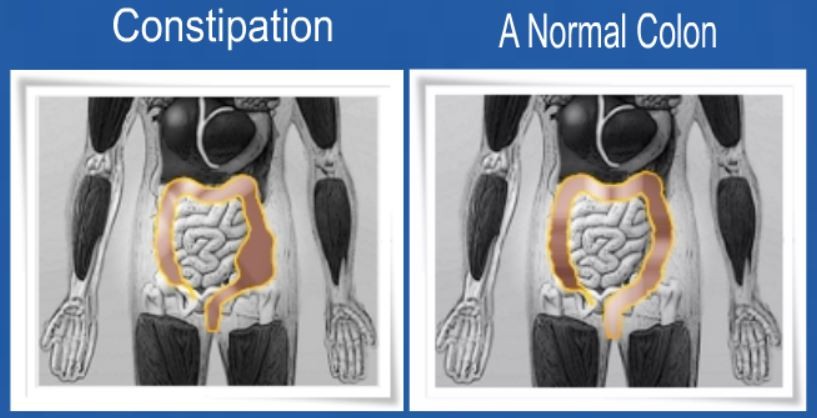 Constipation is one of the first signs indicating to us that our bowels are not functioning properly. Constipation especially plagues those engaged in sedentary occupations, those who have poor eating habits and those not drinking sufficient water. When a person is constipated, the walls of the colon are often impacted with accumulated fecal matter. The inner diameter of the colon is reduced like a water pipe with a buildup of mineral deposits. Eventually the opening becomes narrower making it more difficult for wastes to pass. Since the encrusted feces line the colon wall, the colon is unable to absorb nutrients from our food. Waste from the blood which should normally be drawn into the colon through the colon walls are reabsorbed by the body along with other toxins resulting from the fermentation and putrefaction of incompletely digested food.
